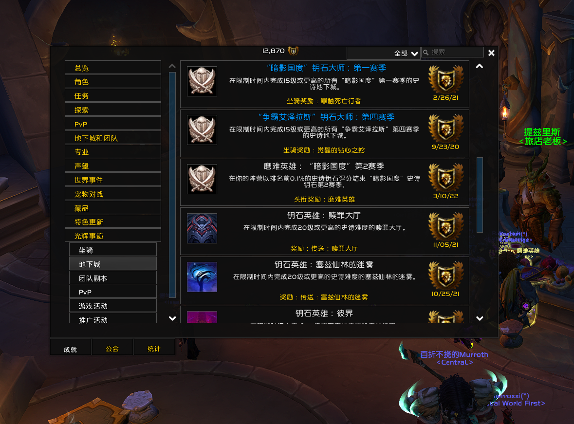 - World of Warcraft. Played since childhood. I have got 5 Hall of Fame and 2 Mythic+ Titles.